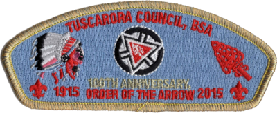100th Anniversary of the OA, Blue Background, Indian & Arrowhead, Gold Mylar Border, 100 made. ISCA Guide Code: SA-54.
