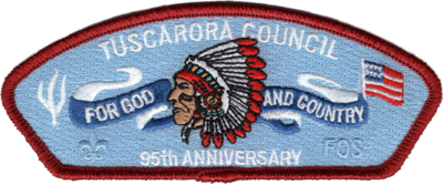 Friends of Scouting - Colorful Indian Head, FOR GOD & COUNTRY, "95th Anniversary", Red Mylar Border. ISCA Guide Code: SA-79.