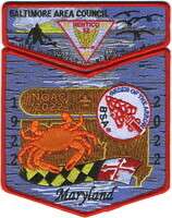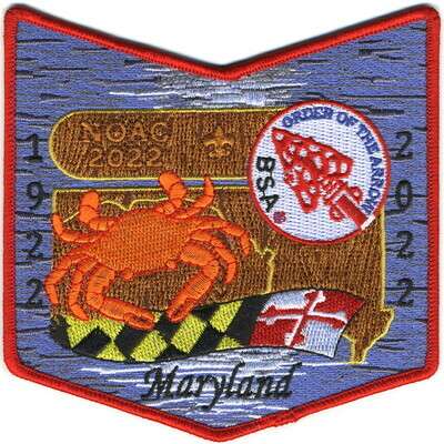 NOAC22; 100th Ann; crab, OA logo, and Maryland banner; "Maryland"; no lodge name; "1922"; "2022"
