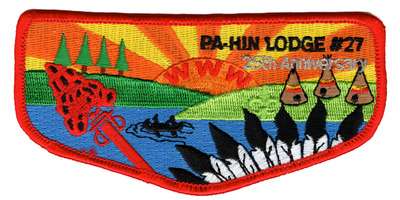 The S15 flap was issued to celebrate the 25th Anniversary of Pa-Hin Lodge. This patch set was given to new members at both the Spring and Fall Conclaves, with separate chevrons for the Spring vs Fall Conclaves (X7 and X10 respectively). Note: This set was part of a larger set issued for Pa-Hin's 25th Anniversary with a charter date of 1977.