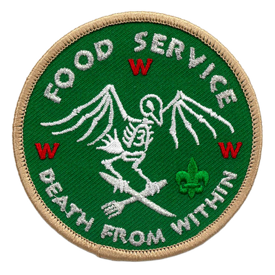 Food Service "Death From Within" skeleton cardinal perched on knife/fork